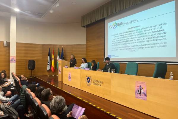 The conference was organized by the Institute of Biomedical Research of Málaga (IBIMA-BIONAND Platform), led by researchers Raquel Yahyaoui Macías and Juan Antonio García Ranea, the latter also involved in the EURAS project at the University of Málaga. Since 2015, IBIMA-RARE has served as a cross-cutting area in rare disease research, representing all stakeholders including basic, translational, and clinical research, healthcare providers, patient and family associations, and communicators dedicated to disseminating scientific advances and the social reality of rare diseases.